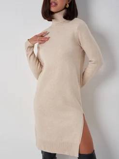 Платье теплое оверсайз свитер вязаное с горлом