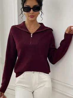 Свитер оверсайз на молнии шерстяной вязаный