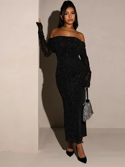 Платье длинное вечернее праздничное блестящее