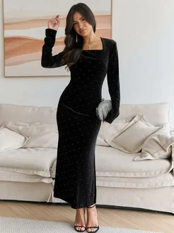 Платье бархатное вечернее праздничное блестящее со стразами