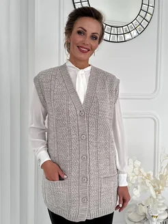 Жилетка вязанная трикотажная удлиненная на пуговицах