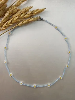 Голубой чокер с ромашками (нержавеющая сталь)