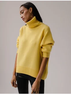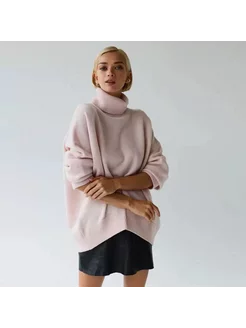 Свитер оверсайз вязаный в рубчик длинный с горлом 2024