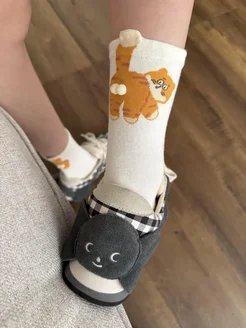 Носки с пушистыми яйцами котиков молочные 1 пара