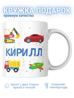 Кружка для мальчика Кирилл с экскаватором