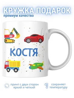 Кружка для мальчика Костя с экскаватором