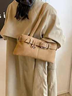 Сумка багет на плечо коричневая