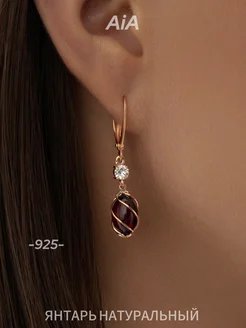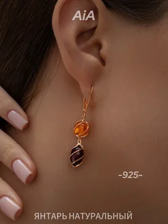 Серьги серебро 925 с натуральным янтарем