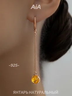 Серьги серебро 925 с натуральным янтарем длинные