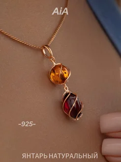 Подвеска из серебра 925 с натуральным янтарем