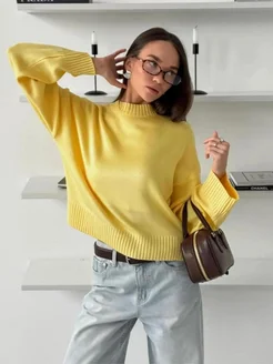 Свитер оверсайз укороченный джемпер с горлом вязаный