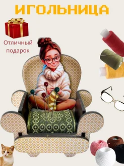 Игольница сувенирная деревянная "Девушка в кресле"