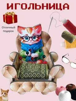 Игольница сувенирная деревянная "Кот в кресле"