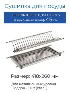 Сушилка для посуды в шкаф 45 см, 41.8 см х 28 см, сталь