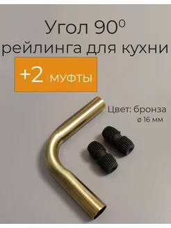 Угол для кухонного рейлинга 16 мм бронза+2 муфты