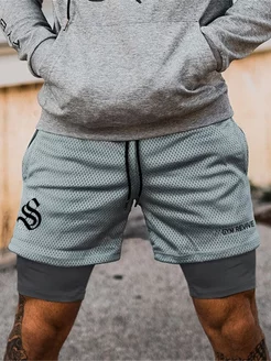 Шорты с тайтсами спортивные серые для фитнеса бега мма