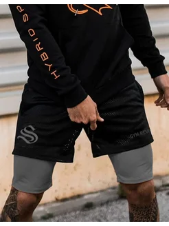 Шорты спортивные для фитнеса и зала черные с тайтсами
