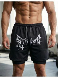 Шорты с тайтсами спортивные черные для фитнеса бега мма