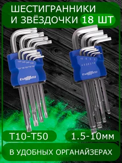 Ключи шестигранники и звездочки (HEX и TORX) 18 предметов