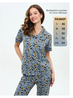 Пижама со штанами и рубашкой женская хлопок