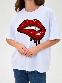 Футболка хлопок с принтом Губы