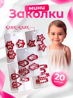 Мини заколки клик клак набор красные 20 шт маленькие мягкие