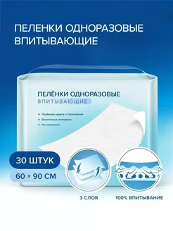 Пеленки одноразовые впитывающие, 60*90см, 30 шт