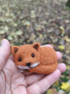 Брошь ручной работы оригинальная из шерсти Лисенок