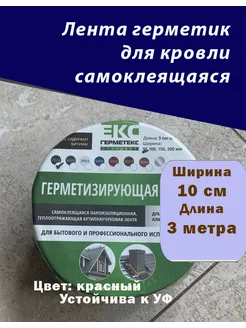 Лента герметик для кровли самоклеящаяся 10см*3м, Красный