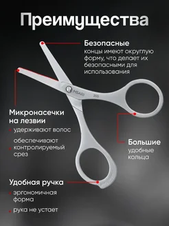 Ножницы маникюрные безопасные закругленные для ногтей, усов