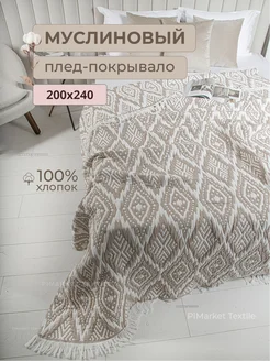 Хлопковое мягкое покрывало на кровать или диван 200x240