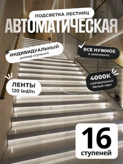 Подсветка лестницы с датчиками движения 4000К 16 ступеней