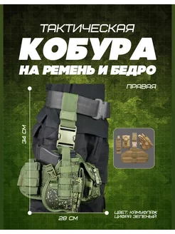 Кобура на бедро и ремень,правая, камуфляж цифра зеленый