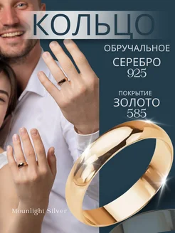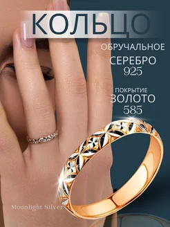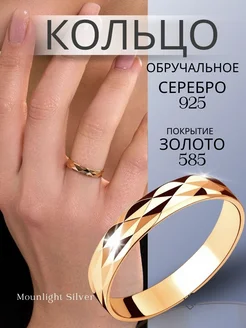 Кольцо серебро 925 обручальное позолоченное