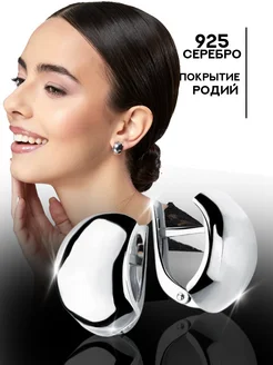 Серьги серебро 925 крупные родированные