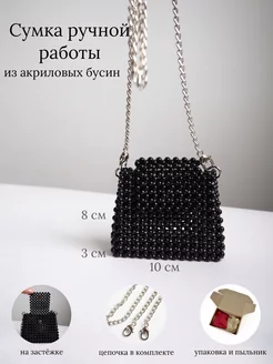 Сумка из бусинок черная плетеная для девочки летняя