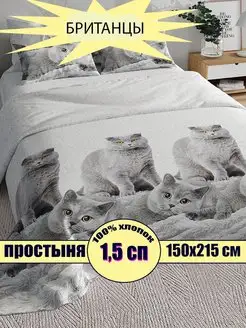 Простыня 1.5 спальная 150х215 см, 100% хлопок