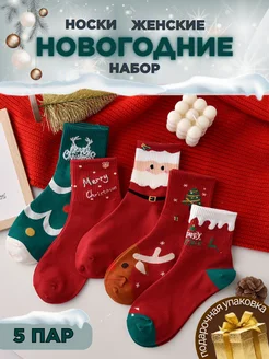 Носки новогодние набор высокие с принтом 5 пар
