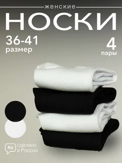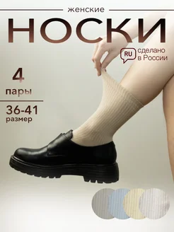 носки средней длины в рубчик из хлопка, 4 пары