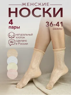 носки высокие хлопок ажурные, набор 4 пары