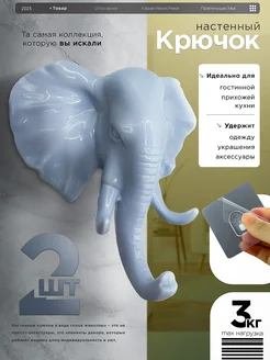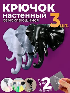 Крючок настенный самоклеящийся для одежды Слон 3шт