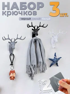 Крючок настенный для одежды ключей разноцветные Олень 3шт
