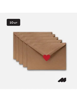 Подарочные крафт-конверты С6 10 шт с сердечками