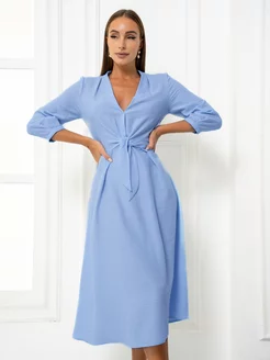 Платье летнее льняное с длинным рукавом миди