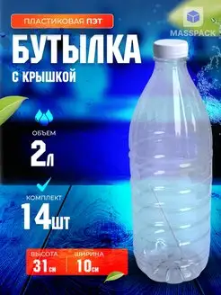 Бутылка для воды бутылка пластиковая 2 литра, 14 шт