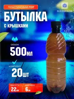 Бутылка коричневая пластиковая с крышкой 500 мл, 20 шт