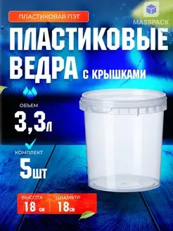 Ведро пищевое пластиковое одноразовое 3,3 л, 5 шт