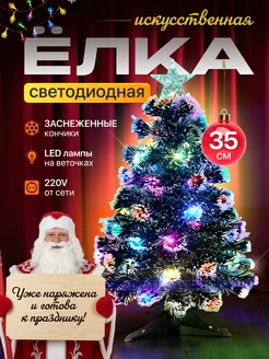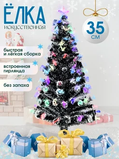 Елка искусственная маленькая с гирляндой встроенной 35 см