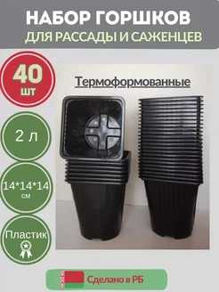 Горшки для рассады, 40 кашпо 2л горшочки квадратные