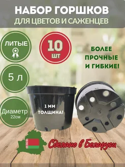 Горшки для цветов литые 5л, 10 кашпо для рассады и цветов